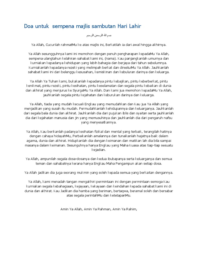 Doa Untuk Sempena Majlis Sambutan Hari Lahir Pdf